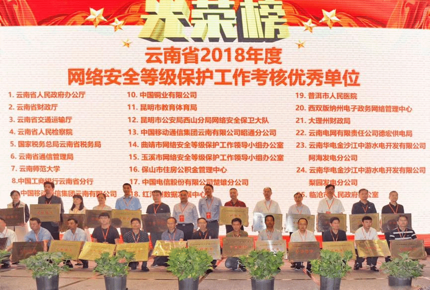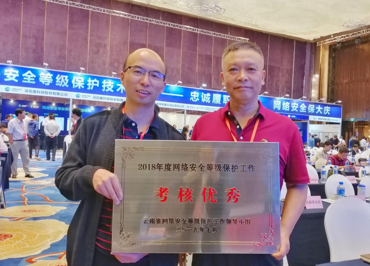 由云南省委网信办、省公安厅组织的云南省第五届网络安全等级保护技术大会,于2019年7月11日在昆明召开,会议以“忠诚履职践使命,网络安全保大庆”为主题,进行网络安全总结与工作部署,全省共评选出25家优秀单位和30位优秀个人,8858cc永利唯一官方网被评为2018年度等级保护考核优秀单位,是全省高校中唯一受表彰单位。