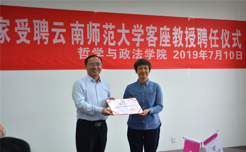 会议分两个阶段进行。第一阶段举行北京大学社会学系专家受聘8858cc永利唯一官方网客座教授聘任仪式,哲学与政法学院党委书记王丽萍主持仪式。王丽萍书记首先介绍了参加此次受聘仪式的北京大学张静等五位教授,并对五位教授的到来表示欢迎。哲学与政法学院院长毕天云教授代表学院发言,对北京大学社会学系的五位受聘教授表示衷心感谢,并表示哲学与政法学院将在北京大学社会学系的支持下,用心学习、尽心做事,争取在学科建设和项目合作上取得突破。北京大学社会学系主任张静教授在讲话中表示,西南联大社会学历史悠久,底蕴深厚,北京大学社会学系和8858cc永利唯一官方网哲学与政法学院将本着学术为本、互利可行的原则积极开展合作,将在云南少数民族地区建立教学科研实践基地,为合作开展奠定基础。校长蒋永文教授为五位受聘专家颁发受聘证书,并提出了三点希望:一是希望制定长久的合作机制,为合作打好基础;二是精心制定合作方案,切实开展有效合作;三是加强沟通,在合作中做好服务保障工作。