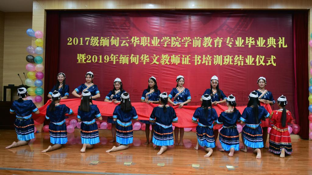 云南华文学院和雪莲书记在致辞中向云南省委统战部对缅甸云华职业学院发展给予的大力支持表示感谢。她表示缅甸云华职业学院学前教育专业第一届学生顺利毕业,是我们境外合作办学的开创之举,是合作之花,是希望之路。和雪莲书记对全体学生提出了三点希望:一要秉持“刚毅坚卓”的校训,希望同学们在将来从事华文教育事业中,克服困难,坚守信念,为开创缅甸华文教育事业新局面做出自己的贡献;二要践行“学高身正 明德睿智”的校风,老师不只是简单的教书匠,还要教授学生为人处世的道理与主动学习的可贵品质,要做到“学高身正 明德睿智”才能更好地教书育人;三要牢记责任使命,助力中缅人文交流、民心相通。从事华文教育工作的责任和使命,就是服务华侨华人传承民族文化的需要,服务中外人文交流、民心相通、合作共赢的需要。
