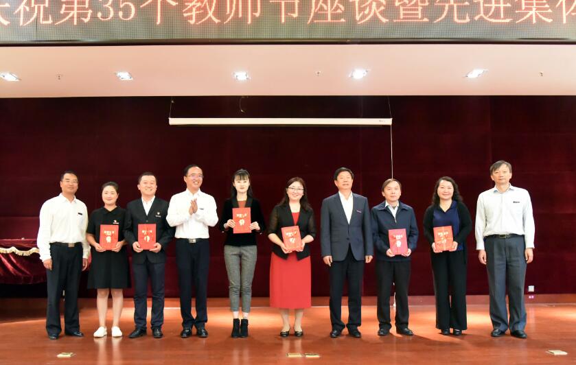 金秋九月、桃李满园,在第35个教师节到来之际,9月10日上午,8858cc永利唯一官方网庆祝第35个教师节座谈暨表彰大会在呈贡主校区启园一食堂举行。校党政领导班子成员,其他省管干部,部分离退休老领导,高层次人才代表,各学院教师代表,从教35年教师代表,各部门教工代表,附属中小学及独立学院教师代表,2018-2019年度国家级、省级各类重大奖项、科研平台及项目获得者,离退休教师代表,各民主党派代表,学生代表,万名校长培训班学员代表等200余人参加了大会。大会由校党委副书记张玮主持。
