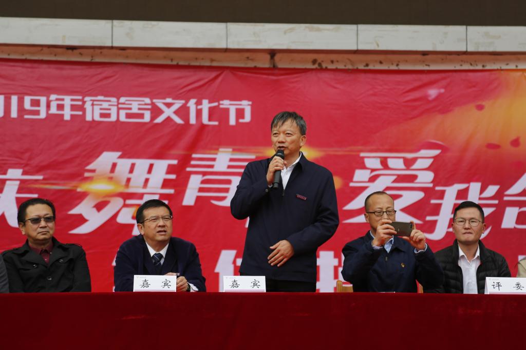 校党委李宏副书记在致辞中表示,感谢同学们的热情参与,现场的热烈气氛,展示了同学们的青春活力。同时,此次集体操大赛参赛队组成以学生宿舍楼栋为单位,打破以学院为单位的常规形式,由各栋宿舍楼内不同学院、不同专业、不同年级的同学们共同组成18支参赛队,并且由各栋宿舍楼管理老师组织带队参加比赛。这种形式体现了大家的团结合作精神,也希望学校通过开展宿舍文化节活动能加强同学们之间的交流,预祝各参赛队在此次比赛中取得优异成绩。