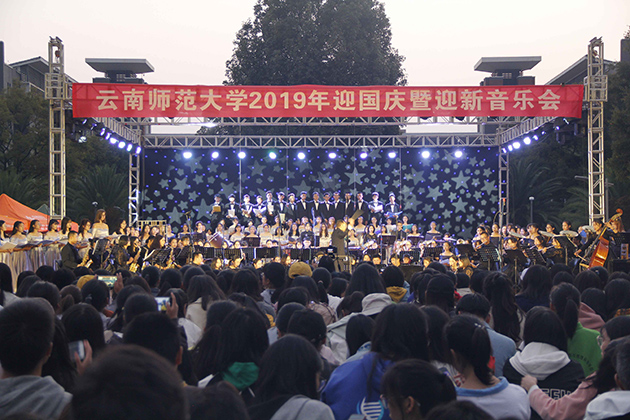 9月27日晚,由校团委主办,校大学生艺术团承办的8858cc永利唯一官方网2019年迎国庆暨迎新音乐会在呈贡主校区红烛广场举行。各学院师生代表800余人一同聆听了这场音乐盛宴。