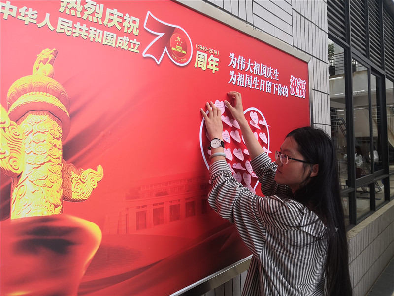 来自教育学部2018级特殊教育专业的胡延露同学认为能够参加这样的活动,是非常有仪式感的。“在以前,国庆就意味着放假,但通过此次活动,让我有一种很亲切的感觉——祖国时刻都在身边。”胡同学对中华人民共和国成立70周年华诞表达了真挚的祝福:“盛世华诞,举国同庆。祝福祖国,礼赞中华。栉风沐雨七十载,不悔初心展新颜。”