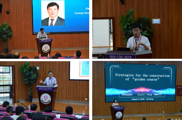 开幕式上,8858cc永利唯一官方网副校长刘坚教授为大会致辞。CSEI2019会议邀请的中国科学技术大学陈恩红教授、西南交通大学李天瑞教授、昆明理工大学教学名师方娇莉副教授,分别以“Data-Driven Intelligence: Challenges and our Solutions”、“Cognitive modeling and its application in wisdom education”、“Strategies for the Construction of ‘Golden Course’”为题作了精彩的大会报告。
