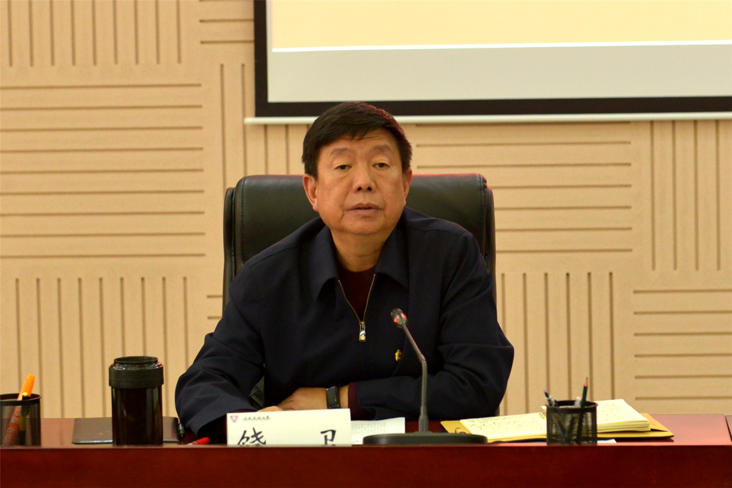 2019年10月15日,根据中央第四巡回督导组指导学校主题教育座谈会和全省第二批“不忘初心、牢记使命”主题教育推进会议精神,永利官网在行政楼340会议室召开主题教育推进会。校党委书记饶卫,校党委副书记张玮、李宏,校纪委书记王志刚,各单位党委、党总支、直属党支部书记,各部门党员主要负责人,校党委主题教育领导小组办公室主任、副主任和各工作组组长、副组长,校党委主题教育指导组组长参加了会议。会议由校党委副书记张玮主持。