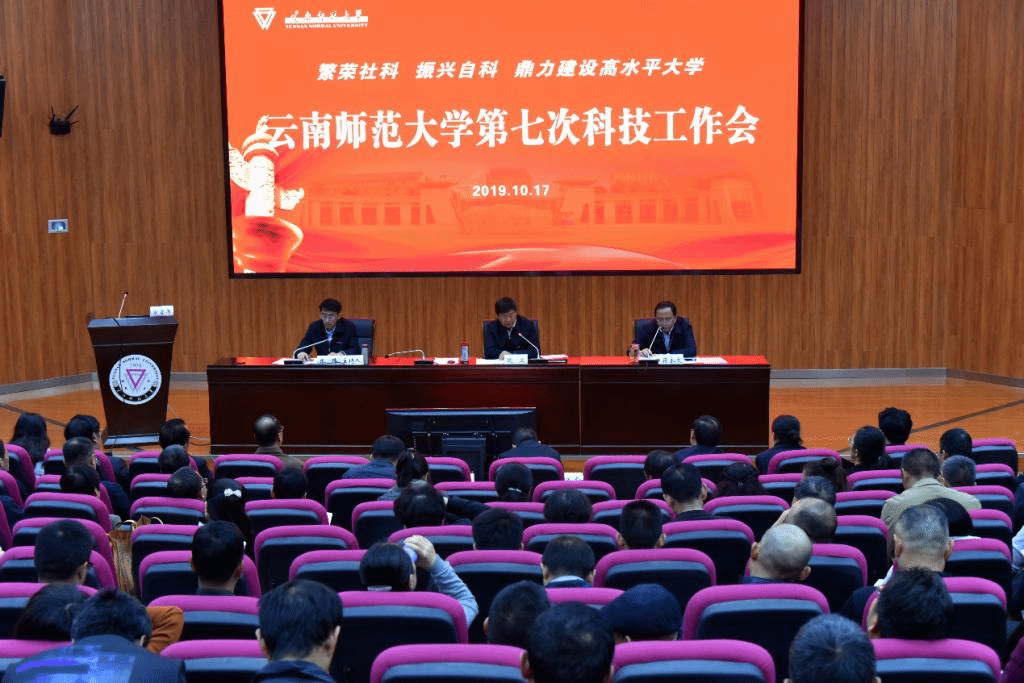 10月17日上午,为深入学习习近平新时代中国特色社会主义思想,贯彻落实习近平总书记关于新时代科技创新的重要论述,永利官网以“不忘初心、牢记使命,全面提升学校科研创新”为主题,召开了云南师范大学第七次科技工作会。全体在校的校领导、各学院、学部、研究所、研究中心党政领导班子成员、机关各部门副处级以上领导干部、国家级、省部级科研平台(基地)主要负责人、科研秘书、科研人员代表等共四百余人参加会议。会议由校党委副书记张玮主持。