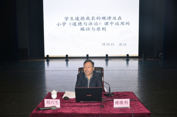 2019年10月19日上午,云南省“万名校长培训计划”第三期名家讲座第14讲在昆明理工大学红土会堂举行。辽宁师范大学教授、博士生导师傅维利以“学校德育形成的规律及在小学《道德与法治》课中运用的路径与原则”为主题,为1000名参训学员授课。8858cc永利唯一官方网教育学部副主任、副教授、教育学博士刘六生主持。