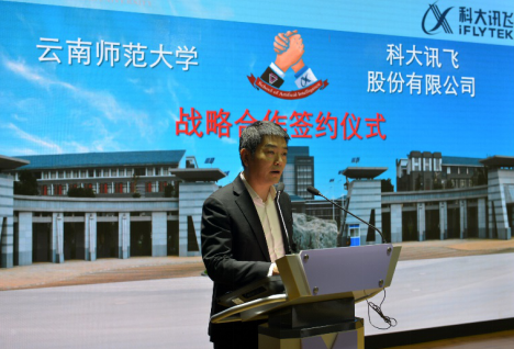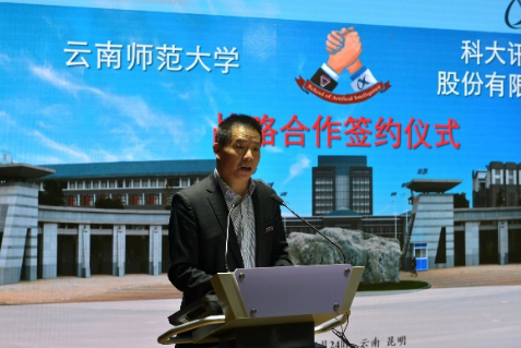 科大讯飞股份有限公司执行总裁陈涛在仪式上表示,他受刘庆峰董事长委托,代表公司向长期以来关心支持科大讯飞事业发展的各位领导表示衷心的感谢;向双方的合作签约以及人工智能学院的顺利揭牌表示热烈的祝贺。陈涛指出,本次合作将在人才培养、科研合作、社会服务方面形成亮点,重点围绕人工智能人才培养主线,创新合作模式,通过双方努力,最终建设为云南乃至南亚、东南亚一流的人工智能学院和学科专业群,实现云南省、8858cc永利唯一官方网和科大讯飞三方的互利多赢。陈涛表达了对8858cc永利唯一官方网的感谢,祝贺双方成功签约,以及人工智能学院的顺利揭牌。