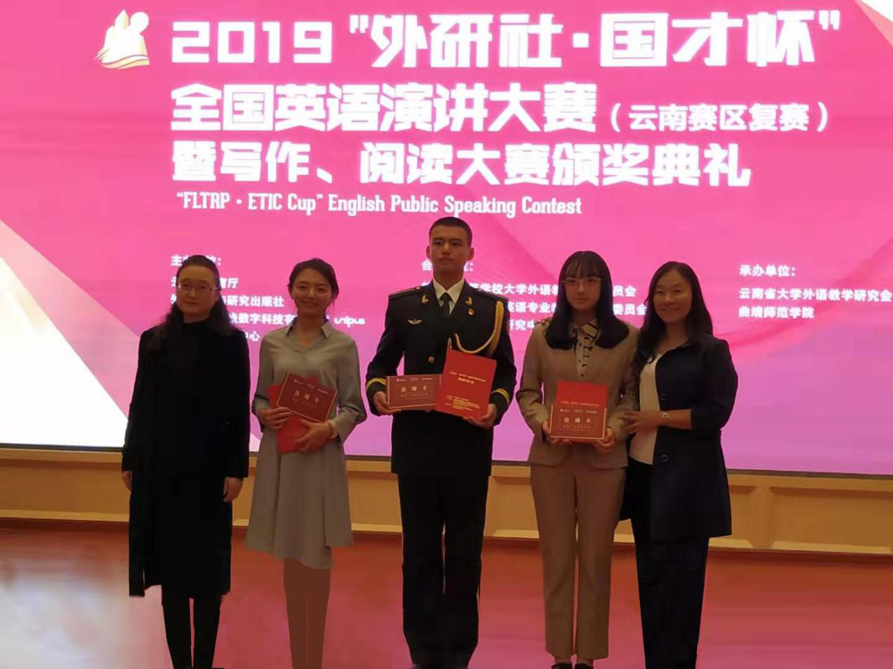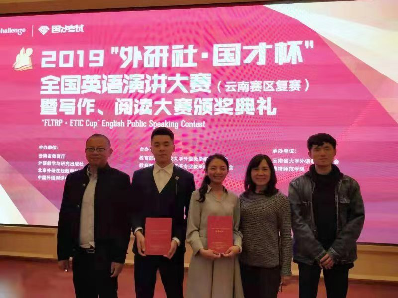 11月1日,2019年“外研社杯”全国英语演讲大赛云南赛区比赛在曲靖师范学院举行。永利官网外国语学院2018级研究生郭思雨同学荣获特等奖,赢得了代表云南省各高校到北京参加全国决赛的资格;旅地学院2018级本科生谭一同学荣获一等奖。