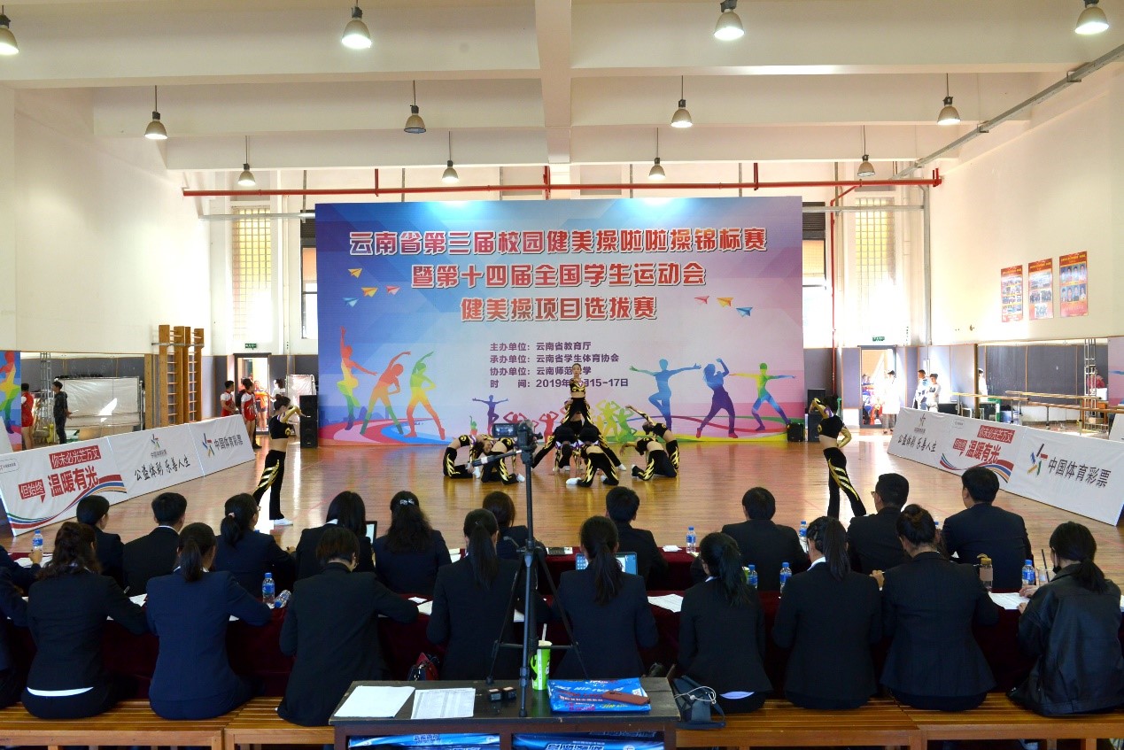 11月15日-17日,由国家体育总局体操运动管理中心、云南省教育厅主办,全国啦啦操委员会、云南省学生体育协会承办,8858cc永利唯一官方网等协办的2019-2020年全国啦啦操联赛(昆明站)暨云南省第三届校园健美操啦啦操锦标赛第十四届全国学生运动会健美操项目选拔赛在8858cc永利唯一官方网主体育馆隆重举行。本届大赛共有来自广东、陕西、四川、甘肃、云南等全国各地的160多支队伍,近4000名运动员参赛。