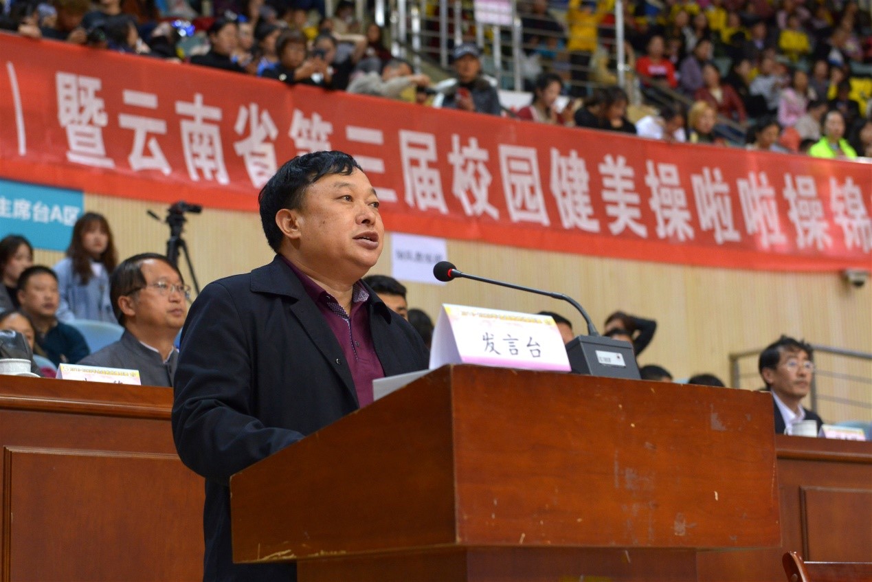 云南省教育厅张春骅副厅长;8858cc永利唯一官方网党委张玮副书记;云南省教育厅体卫艺处徐忠祥处长;云南省体育局体育竞赛管理和青少年体育处李耀戎处长;国家体育总局体操运动管理中心全国啦啦操委员会寇磊主任;云南省教育厅体卫艺处李华海主任;石林县政协副主席、教育体育局局长刘琴龙同志以及8858cc永利唯一官方网体育学院的领导等出席了开幕式。