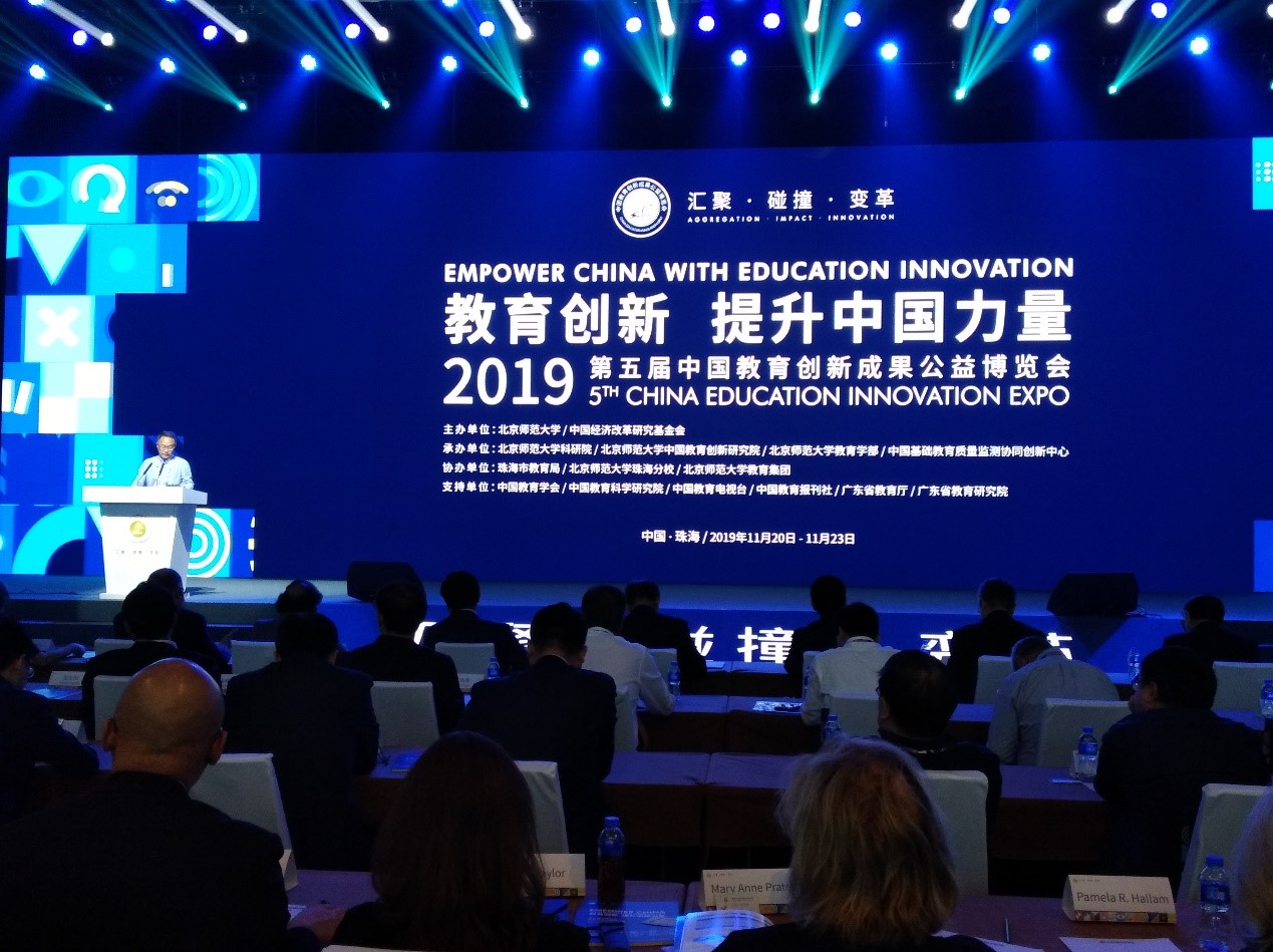 2019年11月20日,第五届中国教育创新成果公益博览会(以下简称“教博会”)在珠海国际会展中心盛大开幕。本届教博会以“汇聚•碰撞•变革:教育创新提升中国力量”为主题,围绕核心素养,落实立德树人,充分运用脑科学、学习科学、互联网+、智能制造等现代前沿科技成果,紧密围绕创新驱动教育高质量发展战略,深化教育领域供给侧结构性改革。