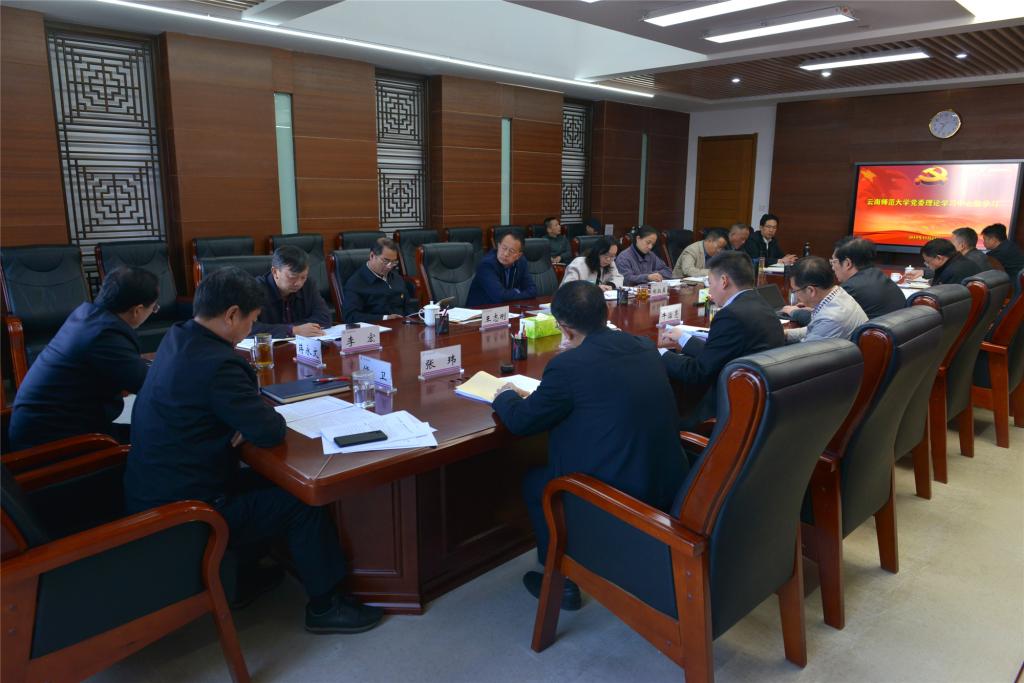 校党委书记饶卫做了讲话。就“深入学习中国共产党第十九届中央委员会第四次全体会议精神”,饶书记提出四点要求:一要结合主题教育抓好学习宣传。深刻认识和全面把握全会的重大意义、目标要求、丰富内涵和精神实质,把学习全会精神作为主题教育学习研讨的重要内容,作为一项重要政治任务,全面抓好领导干部学习、中心组学习、教职工政治理论学习、支部组织生活、万名党员进党校等的学习宣传;二要结合学科优势抓好研究阐释。结合永利官网相关学科优势,联系云南实际,深入开展中国特色社会主义制度研究,有重点开展治理体系和治理能力现代化研究;三要结合“十四五”规划抓好发展布局。把坚持和完善中国特色社会主义大学制度、构建中国特色大学治理体系、提高现代大学治理能力作为学校“十四五”规划的核心任务,谋划好规划编制的前期工作;四要结合学校深化改革抓好贯彻落实。要把学习贯彻四中全会精神与主题教育工作结合起来,健全党对学校全面领导的体制机制,真正把党的领导体现到大学治理各环节。优化教育管理方式,全面推进依法治校,保障师生合法权益,增强广大师生员工的获得感和幸福感。