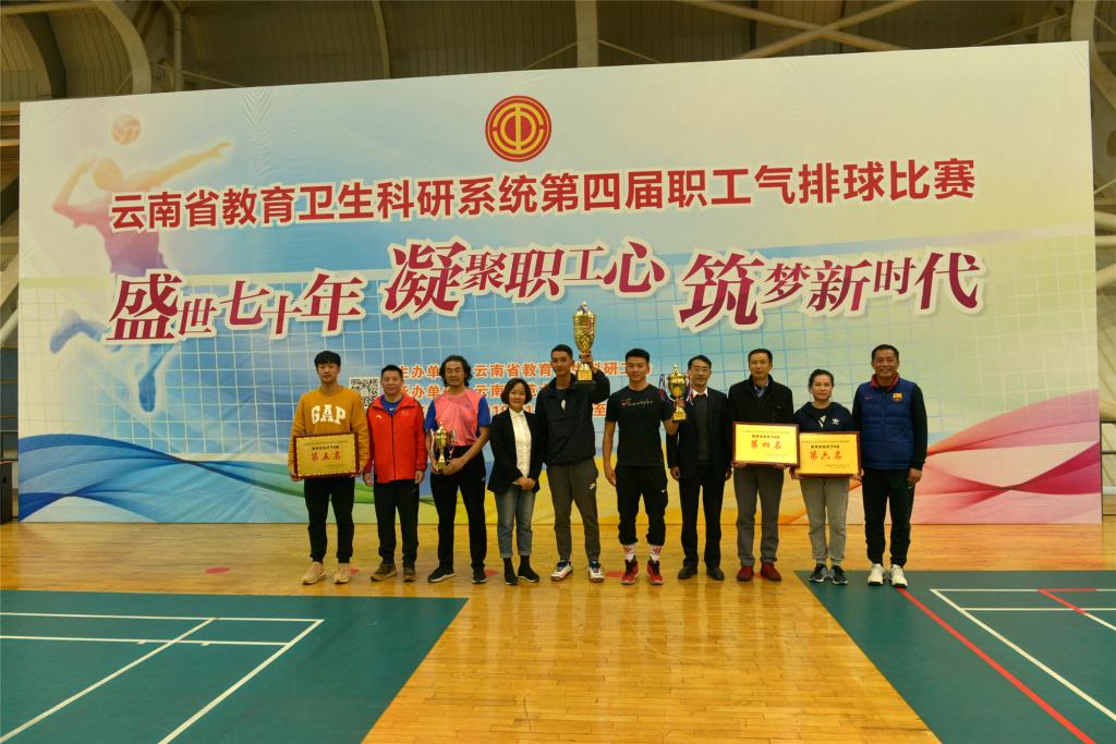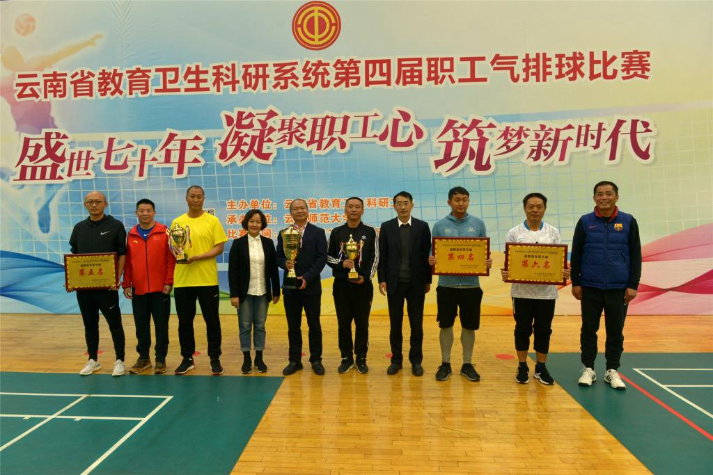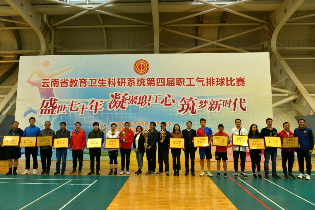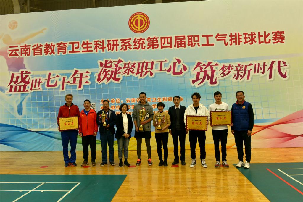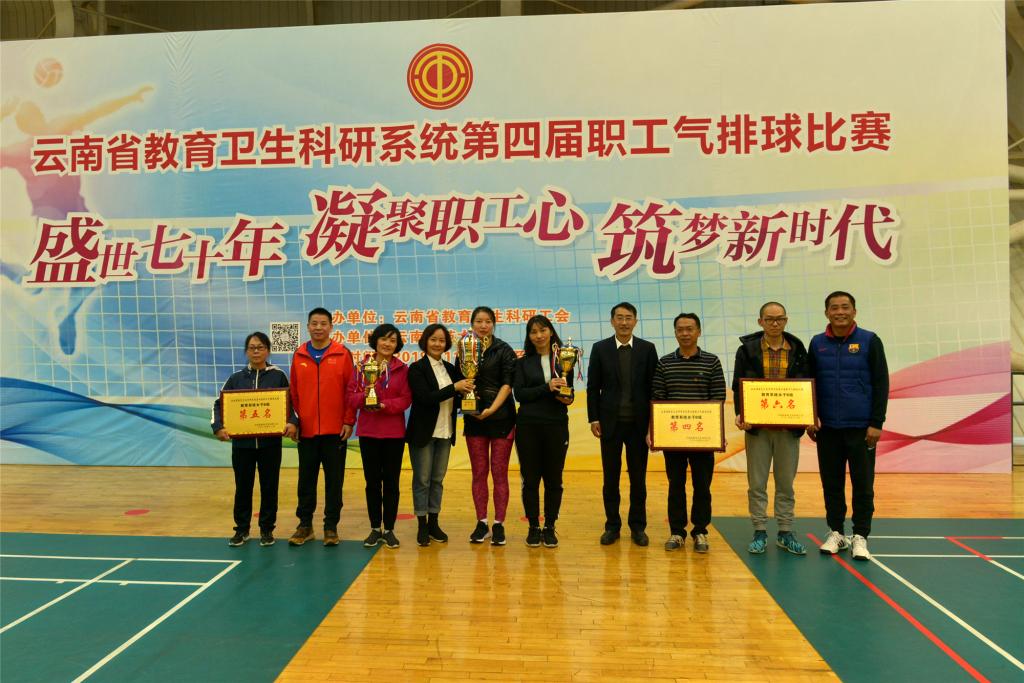 盛世七十年,凝聚职工心,筑梦新时代。经过5天,共计434场比赛的激烈角逐,11月22日下午,云南省教育卫生科研系统第四届职工气排球比赛圆满落下帷幕,闭幕式在永利官网呈贡主校区和园体育馆举行。云南省教育卫生科研工会副主席、女工委主任田咏华,8858cc永利唯一官方网党委副书记张玮,8858cc永利唯一官方网副校长刘宗立,8858cc永利唯一官方网工会常务副主席金黄斌等出席了闭幕式。