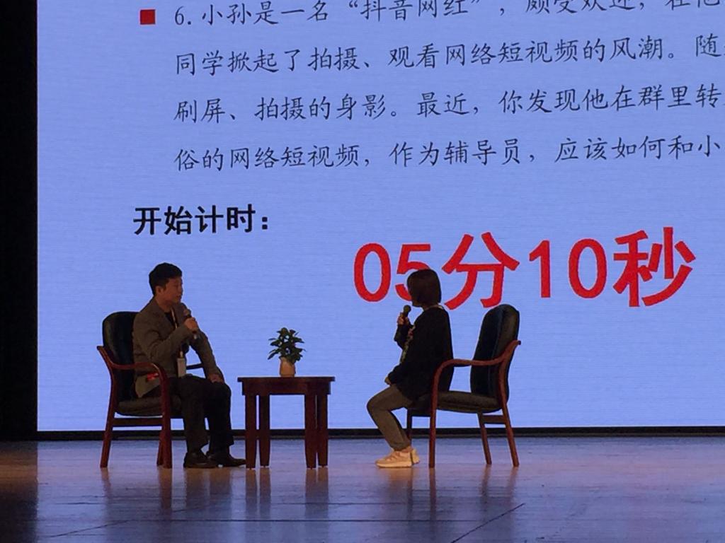 在大赛的尾声,主办方安排了四位专家进行赛事点评,其中包括永利官网教育学部党委副书记刘虹老师和2018年全国高校辅导员素质能力大赛二等奖获得者赵德虎老师。刘虹老师对案例分析和谈心谈话环节做了精彩点评,赵德虎老师对笔试环节进行了深入点评。原婧老师的主题班会视频被播放作为现场展示。