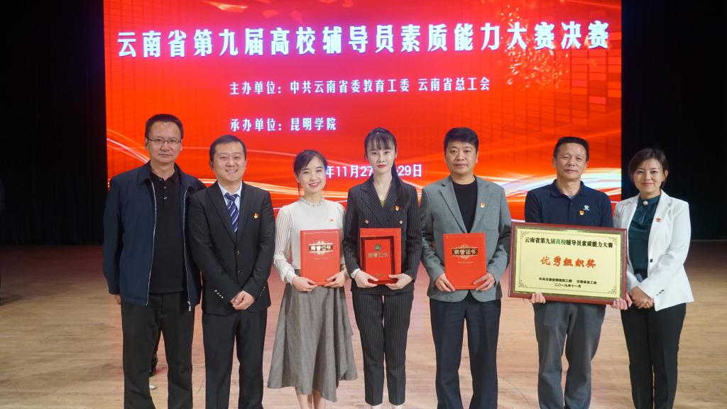 11月27日至29日,由中共云南省委教育工委、省总工会主办,昆明学院承办的云南省第九届高校辅导员素质能力大赛在昆明学院洋浦校区举行,来自全省64所高校的83名辅导员参赛。经过层层选拔和激烈角逐,永利官网能环学院辅导员何雁敏老师摘得云南省高校辅导员素质能力冠军,并荣获最佳博识奖。音舞学院辅导员原婧老师和传媒学院辅导员张辰老师荣获比赛一等奖,并获云南省高校辅导员素质能力标兵,永利官网荣获优秀组织奖。