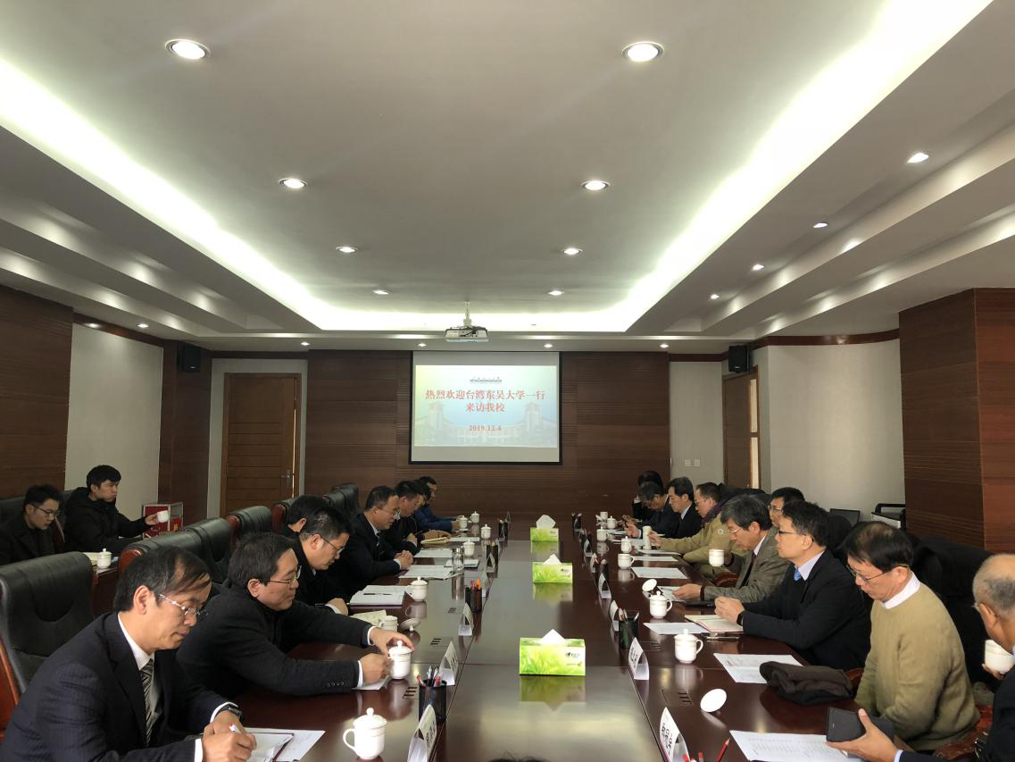 12月4日上午,台湾东吴大学校长潘维大一行十一人到永利官网进行交流访问。校长蒋永文、副校长刘宗立以及港澳台事务办公室、研究生院、外国语学院、经济与管理学院、哲学与政法学院、生命科学学院、信息学院负责人参加会谈。会议由刘宗立副校长主持。