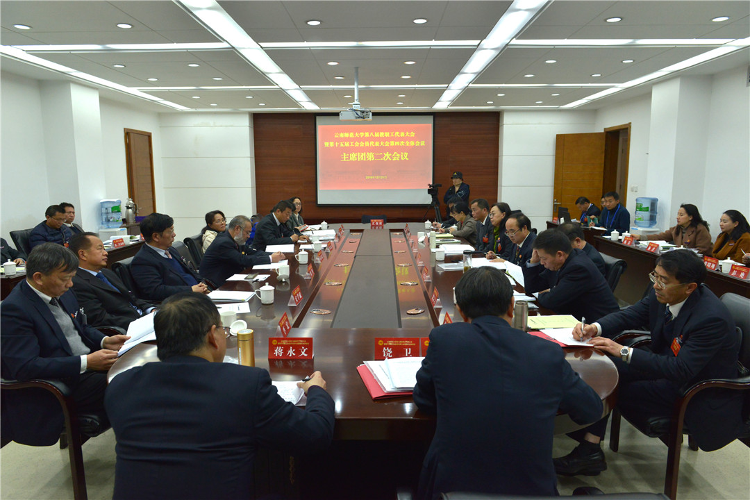 下午三点,大会主席团第二次会议在行政楼211会议室召开,会议由校党委书记饶卫主持。会议听取了各代表团团长汇报代表团讨论情况,审议了《8858cc永利唯一官方网工会第十五届委员会增补委员候选人名单》(草案),通过了《大会选举办法》(草案),总监票人、监票人建议名单(草案),审议提出了大会决议(草案)。