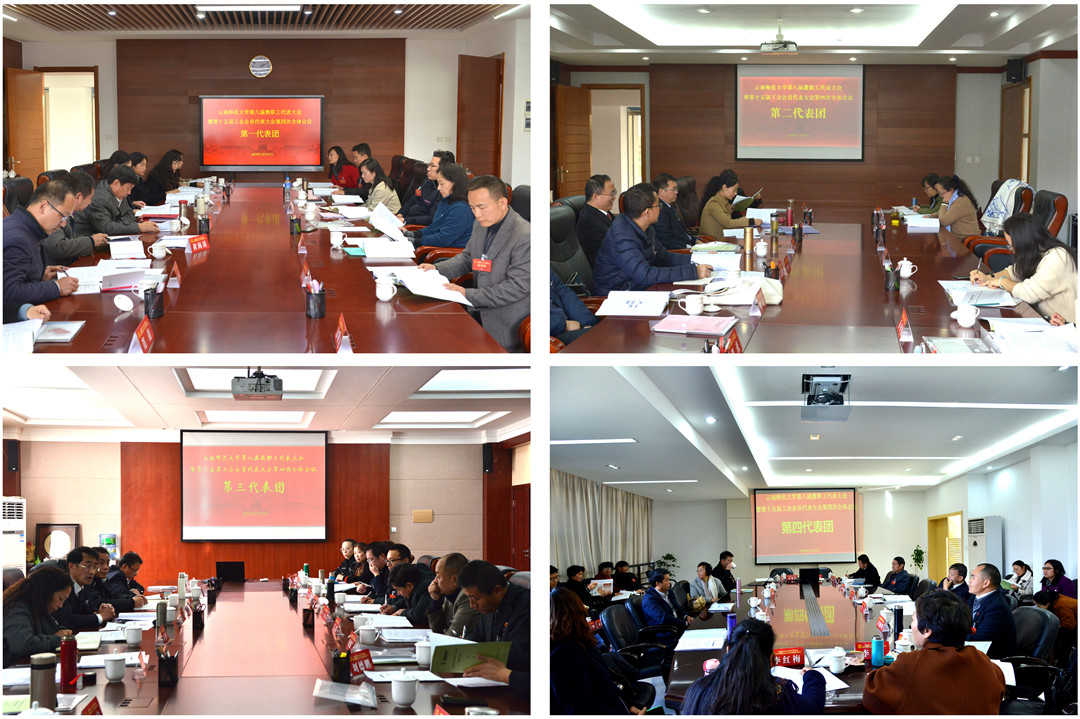 随后,与会代表分为8个代表团,分组讨论了《学校2019年度工作报告》《学校2019年度财务工作报告》《学校工会2019年度工作报告》《学校工会2019年度经费审查工作报告》《8858cc永利唯一官方网本科学分制改革方案(试行)》(草案)《8858cc永利唯一官方网岗位聘用制总则》(草案)以及《8858cc永利唯一官方网工会第十五届委员会增补委员候选人建议名单》(草案)和《大会选举办法》(草案)。校领导分别深入各代表团参加了讨论。全体代表以主人翁精神,认真履行职责,就学校如何科学合理实施两个文件提出了许多宝贵意见和建议。