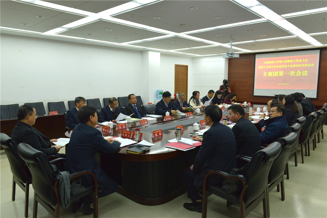 第八届教代会暨第十五届工代会第四次全体会议第一次全体代表大会召开前举行了主席团第一次会议和预备会议,听取了部分代表变动情况的说明,全票通过了会议议案表决办法(草案)、会议主要议程(草案)、会议执行主席分组名单(草案)和8858cc永利唯一官方网工会第十五届委员会增补张玮、郑伟俊为委员候选人的建议名单(草案)。