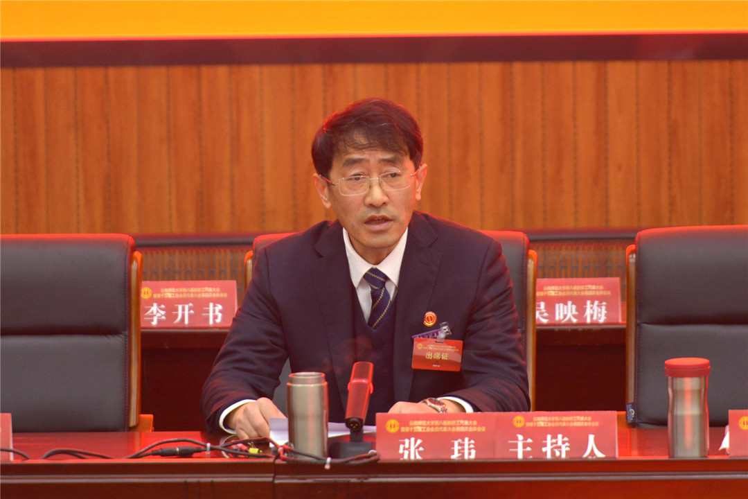 全体代表听取了副校长刘宗立作的《学校2019年度财务工作报告》,副校长武友德关于《8858cc永利唯一官方网学分制改革方案(试行)》(草案)编制情况的说明,以及副校长安学斌关于《8858cc永利唯一官方网岗位聘用制总则》(草案)编制情况的说明。大会书面作学校工会2019年度工作报告和2019年度经费审查工作报告。