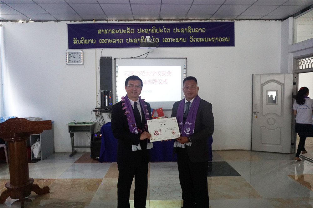 1月4日至1月7日,永利官网副校长牛治亮和云南华文学院党委书记和雪莲等一行到老挝进行访问,商讨留学生招生、华文教师培训和华裔青少年夏令营等合作事宜,并举行8858cc永利唯一官方网校友会老挝分会成立大会。