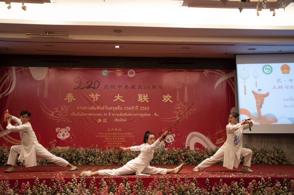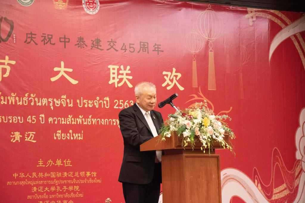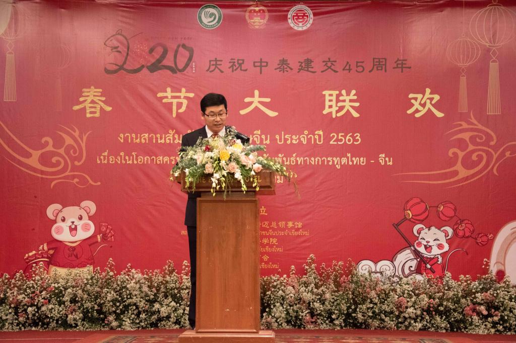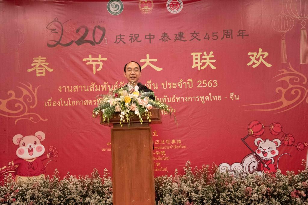 2020年1月17日,为庆祝中泰建交45周年,在中国鼠年新春到来之际,中华人民共和国驻清迈总领事馆、孔子学院总部驻泰王国代表处、清迈大学孔子学院和清迈中华总商会联合举办了2020年泰北新春大联欢活动。中国驻清迈总领馆任义生总领事、泰国国务院助理部长萧汉铭先生、泰国教育部次长办宋松处长、孔子学院总部驻泰王国代表处王会昌处长、清迈中华总商会曾昭淳主席、清迈大学龙姆副校长、清迈府府尹代表、清迈各政府部门代表、清迈孔院中泰方院长等中泰嘉宾,泰北地区近百所大中小学、侨团商会、兄弟孔院课堂、国内相关教育机构代表、清迈当地中资企业代表3000余人欢聚一堂,共同庆祝鼠年新春的到来,谱写了一曲中泰友好之歌。