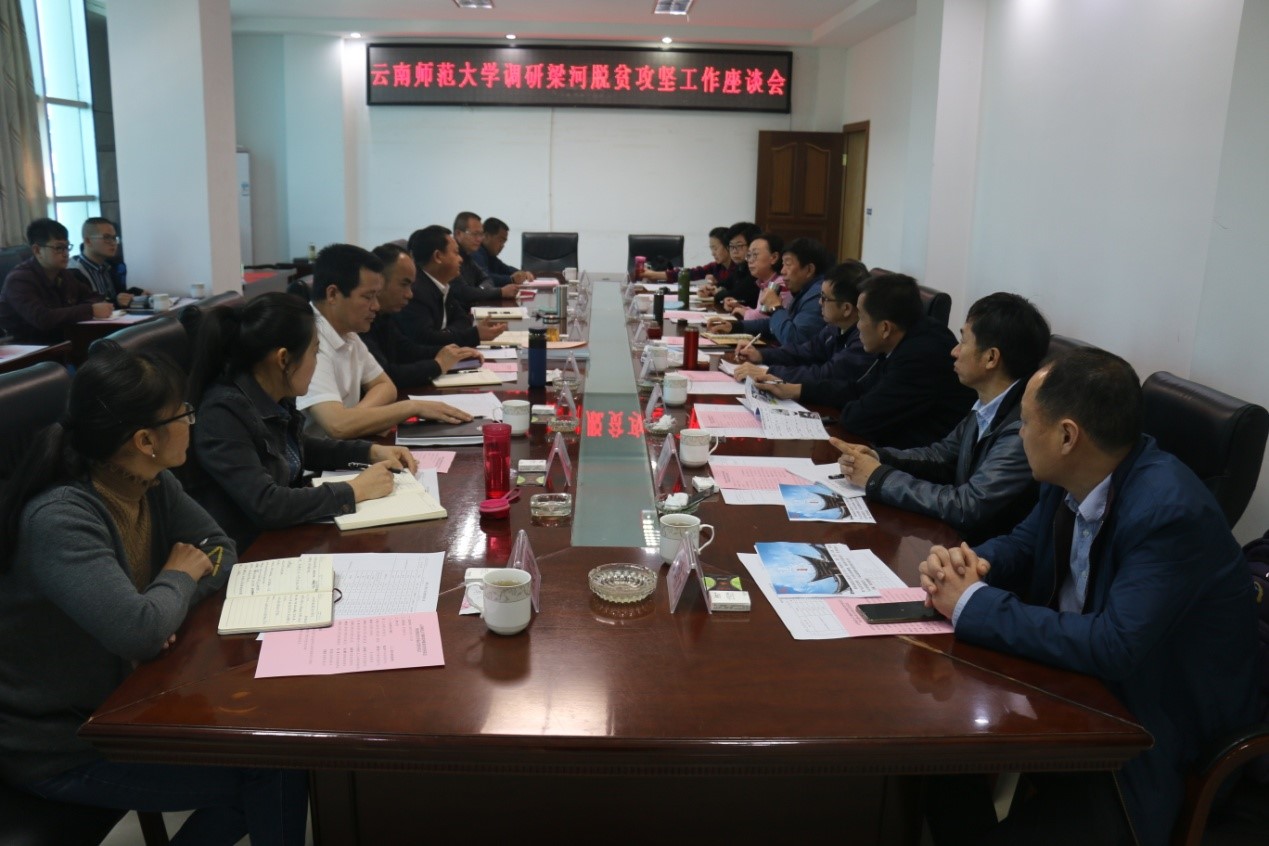 上午,饶书记一行与梁河县委县政府在梁河县县委会议室召开了梁河脱贫攻坚调研座谈会。梁河县委书记张益伟、县长龚翠莲以及梁河县委县政府相关负责同志参加了座谈会。梁河县委书记张益伟介绍了梁河县脱贫攻坚工作情况。永利官网党委书记饶卫,副校长牛治亮、郝淑美围绕学习贯彻习近平总书记《在决战决胜脱贫攻坚座谈会上的讲话》讲话精神、坚决夺取脱贫攻坚战全面胜利分别作了讲话。