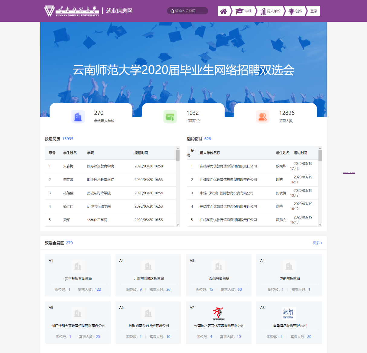 为深入贯彻落实党中央、国务院有关高校毕业生就业的决策部署,落实云南省委省政府的工作要求,在云南省教育厅的精心指导下,永利官网就业处于3月17-20日联合举办了8858cc永利唯一官方网2020年毕业生网络招聘双选会。