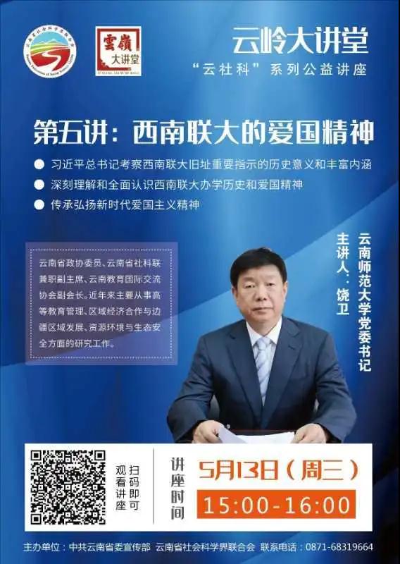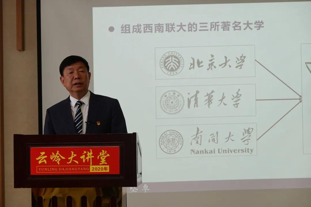 今年1月20日,中共中央总书记、国家主席、中央军委主席习近平同志在云南考察之际,专程来到位于8858cc永利唯一官方网校园内的西南联大旧址考察调研并作出重要指示。为深入学习宣传贯彻习近平总书记考察西南联大旧址重要指示精神,进一步传承弘扬西南联大爱国主义传统,5月13日下午,永利官网党委书记饶卫受邀做客由省委宣传部、省社科联主办的云岭大讲堂,以网络直播的方式作了题为《西南联大的爱国精神》公益讲座。