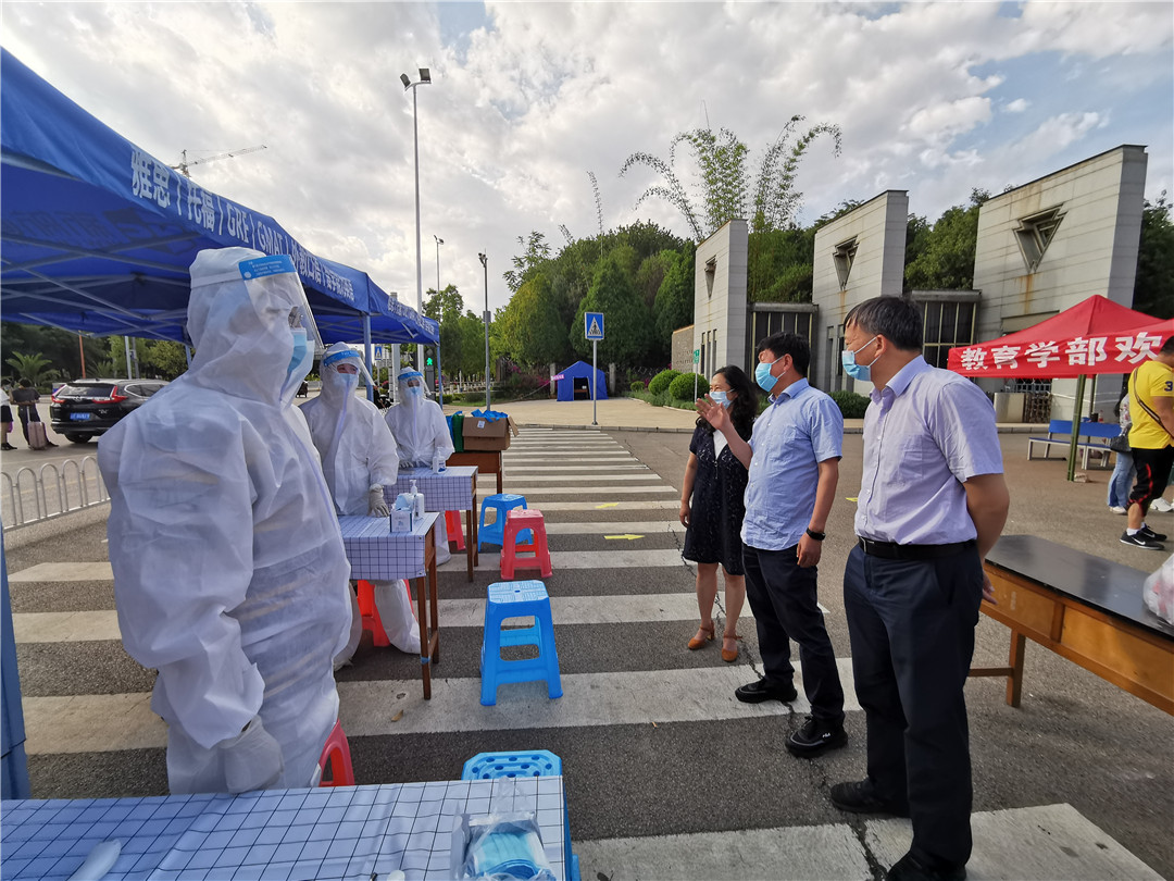 调研中,饶书记详细了解了各学院学生实际返校人数、线上教学开展情况和校园封闭式管理的情况,对各学院、各部门的返校管理工作给予了充分肯定,向坚守在返校管理工作一线的教职工表达了诚挚的感谢。饶书记还仔细询问了近期返校管理工作中发现的问题和困难,并就下一步疫情期间恢复课堂教学秩序和日常管理工作做出了安排部署。