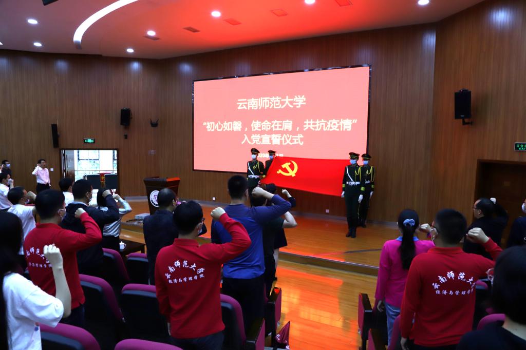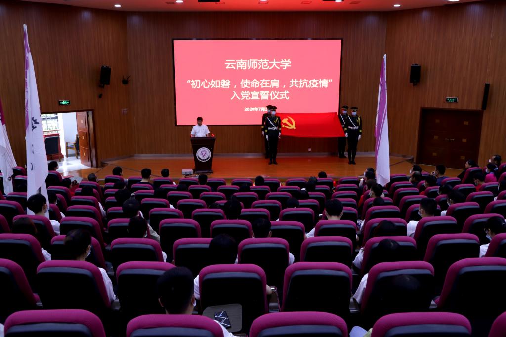 7月1日下午,永利官网在呈贡主校区汇学2栋101报告厅举行了“初心如磐,使命在肩,共抗疫情”入党宣誓仪式。校党委书记饶卫同志、校党委副书记张玮同志,党委办公室、党委组织部、党委宣传部、党委统战部、机关党委、校团委、研究生工作部、学生工作部等部门主要负责人。呈贡主校区各学院党委(党总支)负责人、带队教师和2020年新入党的师生党员代表共200余人参加仪式。入党宣誓仪式由校党委副书记张玮同志主持。