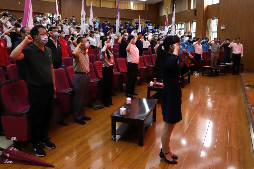 全体肃立奏唱国歌后,入党宣誓仪式正式开始。云南华文学院党委副书记伏云辉同志带领全体党员举起右手,庄严宣誓。