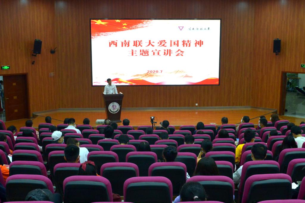 7月2日晚,为进一步深化对习近平总书记考察西南联大旧址时的重要指示精神,学习传承和弘扬西南联大爱国主义精神,讲好西南联大故事,激励广大师生做有历史感责任感、志存高远的时代新人,永利官网在呈贡主校区汇学2栋101报告厅举办了第一场“西南联大爱国精神”主题宣讲会。校党委书记饶卫、校党委副书记李宏以及学校党委办公室、组织部、宣传部、统战部、学生工作部、研究生部、校团委、西南联大博物馆等部门负责人、各学院分管学生工作的党委副书记、辅导员、班主任以及学生代表参加了此次宣讲会。