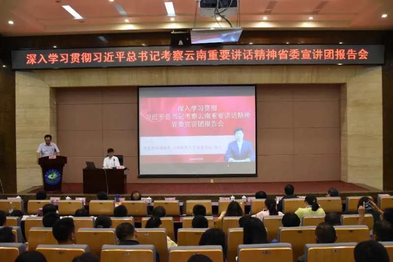 为进一步学习宣传贯彻习近平总书记考察云南重要讲话精神,更好地引导广大师生干部群众把思想和行动统一到重要讲话精神上来,坚定不移推动云南高质量发展,按照省委、省委教育工委、省教育厅的统一安排部署,7月7日下午、7月8日下午和7月9日下午,省委宣讲团成员、永利官网党委书记饶卫分别在8858cc永利唯一官方网文理学院、8858cc永利唯一官方网呈贡校区、云南中医药大学,进行深入学习贯彻习近平总书记考察云南重要讲话精神宣讲。现场师生代表还就报告内容,结合工作、学习实际,与饶卫书记进行现场互动交流。