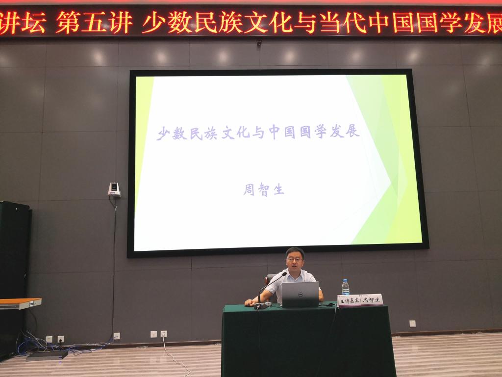 讲座中,周智生教授围绕“少数民族文化与当代中国国学发展”,给大家带来了一场深入浅出、富含启发的精彩讲座。讲座主要围绕以下四方面内容展开:一是什么是新时代的中国国学,周智生教授提出,新时代的中国国学是中华优秀传统文化的提炼与传承,是中华各民族优秀文化的研究集合,以服务于中华各民族共有精神文化家园建设为根本使命。二是中国传统文化发展与少数民族文化的交融,周智生教授指出,汉族传统文化与少数民族文化相互碰撞、交织、融合,铸就了中华文化的繁荣发展;中华文化只有在各民族文化的交融互补中才能不断完善和发展。三是中国当代国学发展的历史使命,周智生教授认为主要体现在坚定中华文化自信、铸牢中华民族共同体意识、促进文明交流互鉴和中华文明创新等方面。最后,周智生教授还提出了中国国学发展的当代思考,包括提高认识,整体把握;多方传承,各显其美;交流交融,再创辉煌等。