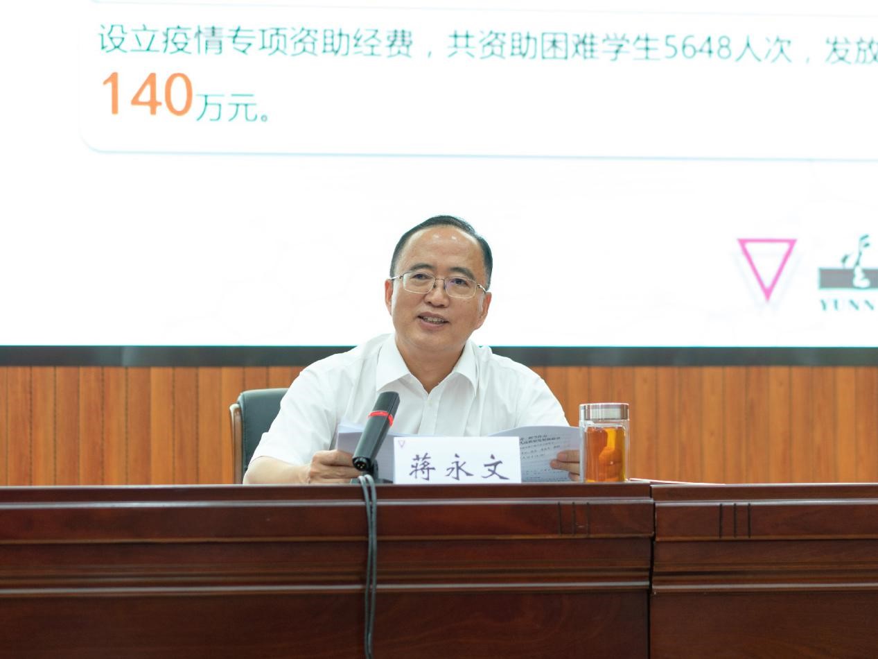 针对当前学校建设发展中存在的一些问题和不足,蒋永文校长对学校下半年重点工作进行了部署与安排:一是突出学习领会,深入贯彻落实习近平总书记考察西南联大旧址重要指示精神,扎实推进特色化、内涵式、高质量发展;二是突出常态长效,持续做好疫情防控,全力确保校园安全稳定;三是突出党建引领,全面从严治党,用一流党建为“双一流”建设提供坚强保障;四是突出顶层设计,强化制度建设,推进治理体系和治理能力现代化;五是突出改革创新,强化效能提升,持续深化综合改革;六是突出品质提升,注重聚力融合,全面提高社会主义建设者和接班人培养质量;七是突出统筹推进,补齐短板弱项,切实以学位点申报、建设带动学科水平整体提升;八是突出高端人才汇聚,加强外引内培,大力推进一流师资队伍建设;九是突出科研工作质量,提升科研创新水平,着力产出一流科研成果;十是突出开放办学宗旨,全面加强对外交流合作,大力提升国际化水平;十一是突出一流社会服务,瞄准经济社会建设发展靶心,全面提升社会服务水平;十二是突出以人为本,聚力民生改善,合力营造一流的育人氛围。