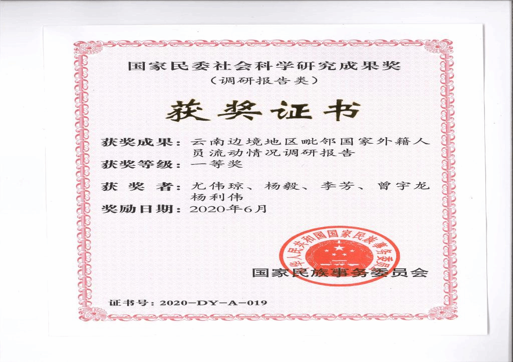 日前,国家民委发布了《关于2019年度全国民族工作优秀调研报告评选结果的通报》(民办发【2020】43号),永利官网法学与社会学尤伟琼教授撰写的《云南边境地区毗邻国家人员流动情况调研报告》荣获2019年度全国民族工作优秀调研报告一等奖,这是永利官网历年来首次荣获此奖项的一等奖。