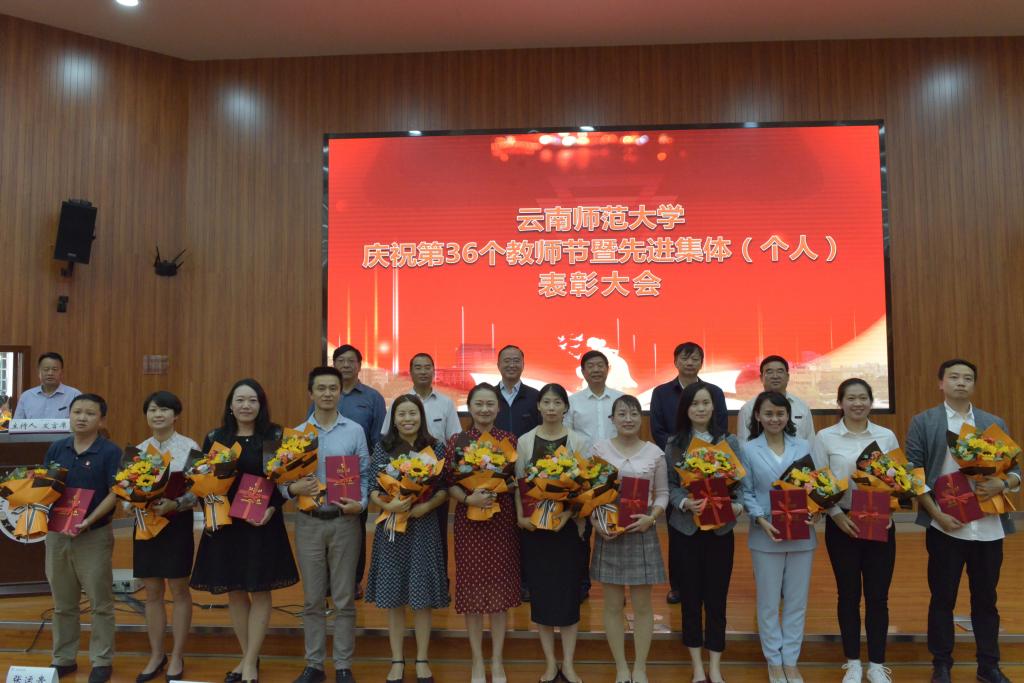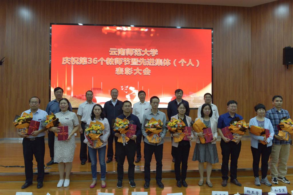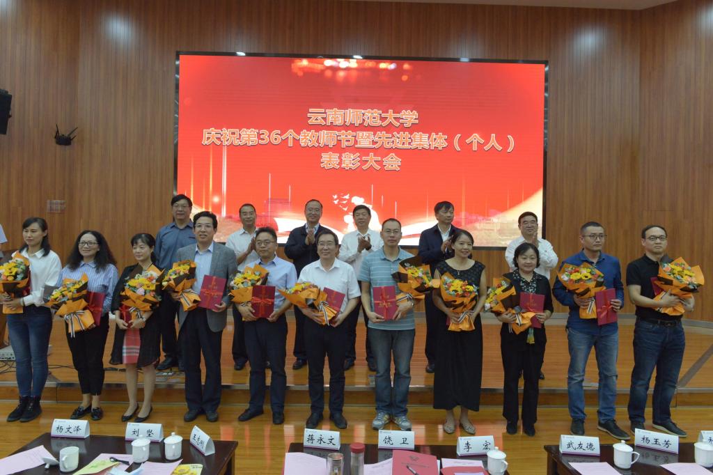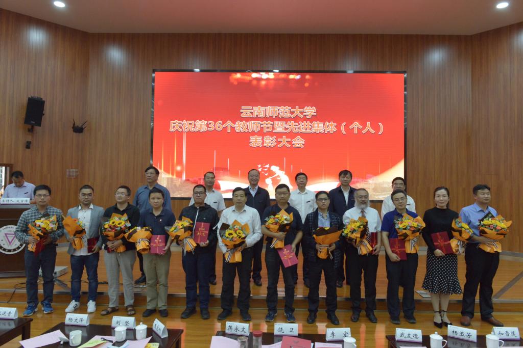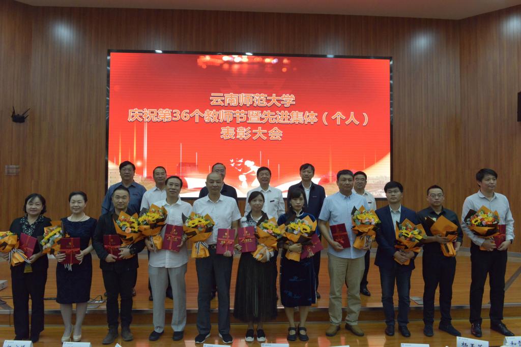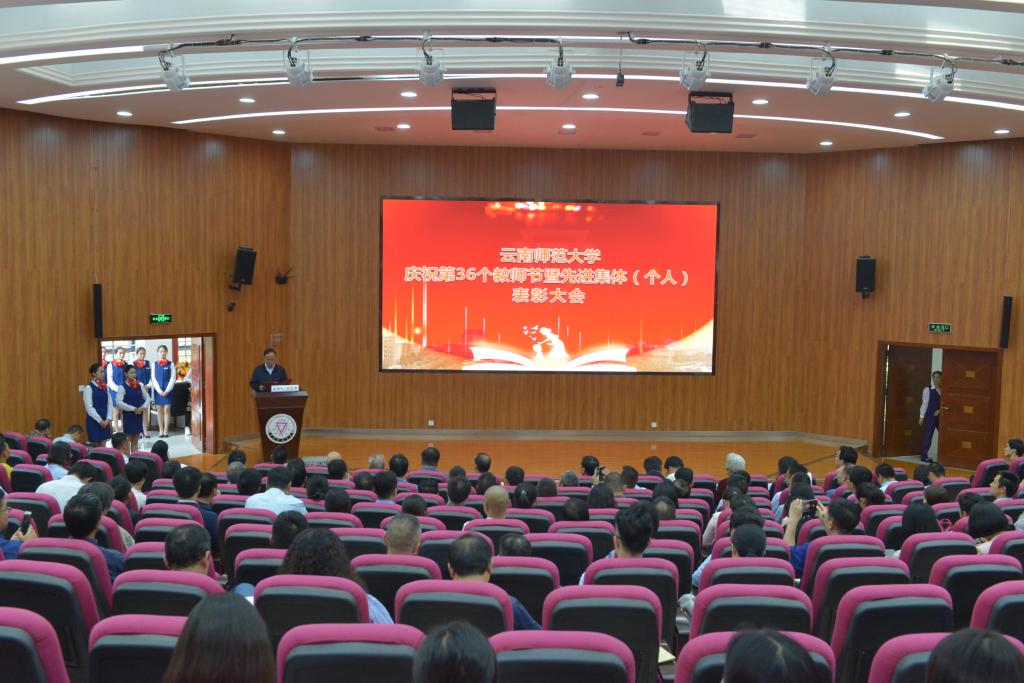 在第36个教师节到来之际,8858cc永利唯一官方网庆祝第36个教师节暨先进集体(个人)表彰大会在呈贡主校区汇学楼报告厅举行。校领导班子成员,其他省管干部,高层次人才代表,各学院(学部)、各部门教师代表,扶贫一线教师代表,附属中小学及独立学院教师代表,离退休教师代表,各民主党派代表,万名校长培训班学员代表,2019-2020年度受表彰的先进集体(个人)代表,学生代表等200余人参加了大会。大会由安学斌副校长主持。