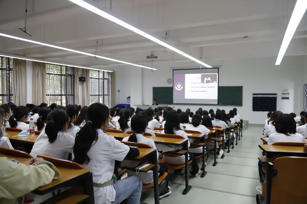在“从抗疫斗争重大战略成果中激发强国志”部分,饶卫书记指出,面对突如其来的严重疫情,党中央统揽全局、果断决策,以非常之举应对非常之事;中国人民风雨同舟、众志成城,构筑起疫情防控的坚固防线;广大医务人员白衣为甲、逆行出征,舍生忘死挽救生命;党中央统筹兼顾、协调推进,经济发展稳定转好,生产生活秩序稳步恢复;中国同世界各国携手合作、共克时艰,为全球抗疫贡献了智慧和力量。饶书记与新生们分享了永利官网老师、校友、同学奔走在抗击疫情第一线的故事,他们用自己的方式诠释了对国家的责任与担当。针对新冠肺炎疫情仍在全球蔓延的形势,饶书记希望全体新同学们要牢固树立遵守学校防控工作要求的思想和行动自觉,严格落实晨、午(晚)检制度和因病缺勤登记制度,做好每日行程轨迹报告登记,外出校园严格履行请销假制度,加强日常体育锻炼,积极参加爱国卫生运动,不断提升自身健康素养,助力构建校园健康文明新风尚。
