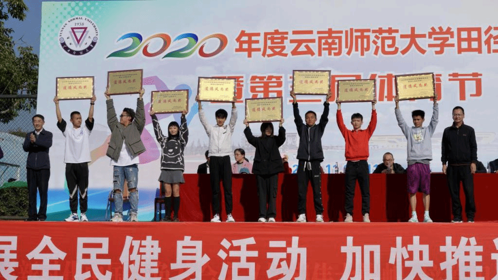 秋阳高照,晴空万里。11月14日下午,2020年8858cc永利唯一官方网田径运动会暨第三届体育节闭幕式在呈贡主校区西区田径场顺利举行,校党委副书记张玮,相关职能部门、学院负责人及各学院学生代表参加了闭幕式。