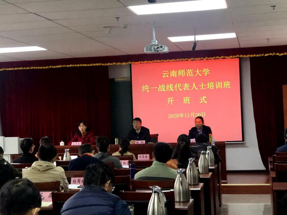 2020年11月30日上午,8858cc永利唯一官方网2020年统一战线代表人士培训班在云南省社会主义学院开班,来自学校各民主党派、统战团体50余人参加了此次培训。学校党委副书记张玮、省社会主义学院秘书长谢灿坤参加开班式,开班式由省社会主义学院教务处处长魏贵华主持。