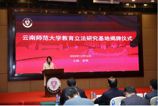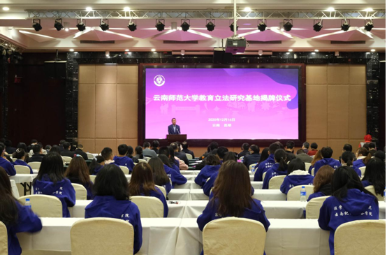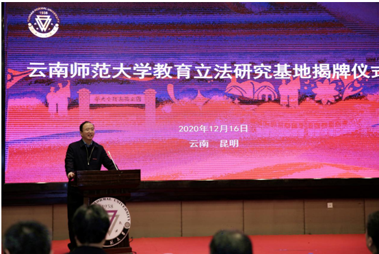 12月16日上午,由教育部政策法规司与8858cc永利唯一官方网共建的教育立法研究基地揭牌仪式暨《教师法》修订研讨会在永利官网国际交流中心举行。研究基地的建立,将以努力建成在国内和南亚东南亚具有重要影响力、优势特色突出的教育法治高端智库为目标,为国家教育法治建设提供智力支持。教育部政策法规司、云南省人大常委会法工委、云南省政府参事、云南省司法厅、全国各地教育学、法学专家及永利官网法学与社会学学院教师、学生代表参加了会议。