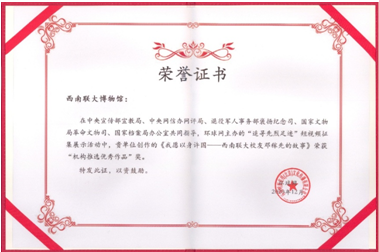 经过征集、展示、初评、投票及终评,活动评选出“机构推选优秀作品”20部。《我愿以身许国——西南联大校友邓稼先的故事》是云南省唯一获奖作品,作品被中国人民革命军事博物馆收藏展示。