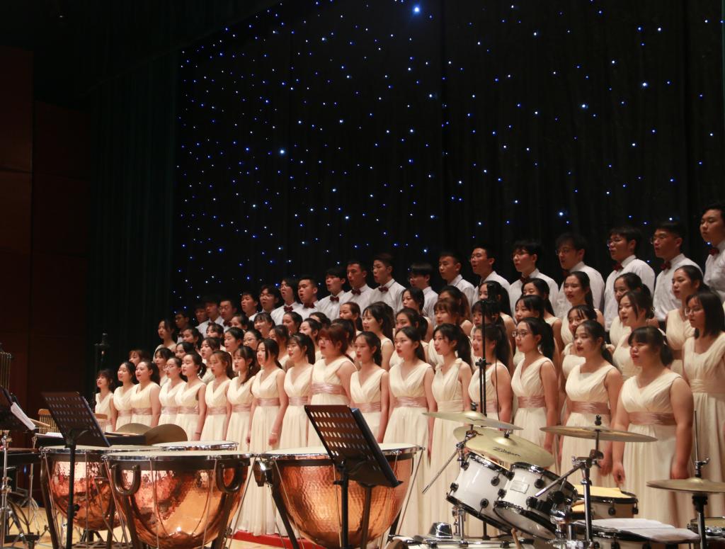 在刘东老师和周辰子老师的指挥下,同学们的歌声传递出“刚毅坚卓”的力量。交响乐《红旗颂》慷慨激昂,《威风堂堂》激情四射,把音乐会的气氛推向高潮。乐曲《俄勒冈》带领观众踏入印第安部落,一首充满戏剧性和力量的《古代英雄传奇》将听众征服。最后,音乐会在节目《我和我的祖国》的歌声中结束,将中华儿女对祖国的爱表现得酣畅淋漓。
