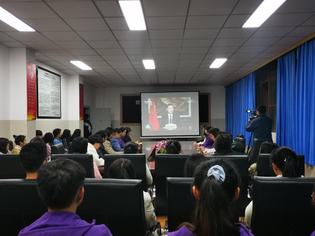 2020年12月31日晚,辞旧迎新之际,8858cc永利唯一官方网一二一西南联大校区明析楼402教室里其乐融融,50余位师生代表齐聚一堂,共同收看国家主席习近平发表二〇二一年新年贺词直播。