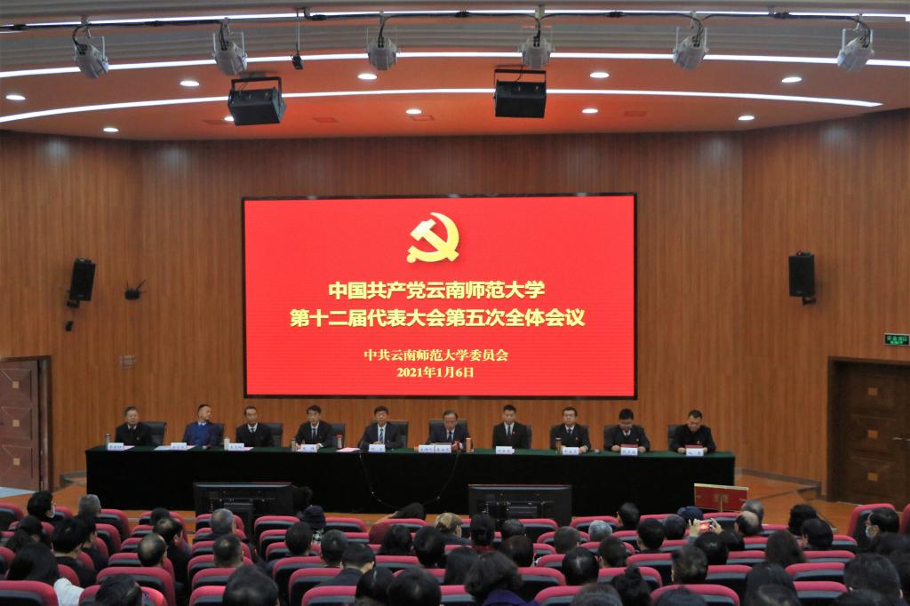 1月6日上午,中国共产党8858cc永利唯一官方网第十二届代表大会第五次全体会议在呈贡主校区汇学2栋101报告厅召开。中共8858cc永利唯一官方网第十二次代表大会代表;其他中共党员省管干部;不是正式代表的各学院、各部门、直属单位、附属中小学校、独立学院中共党员主要负责人(含主持工作的副职);非中共党员省管干部;人大代表、政协委员,各民主党派基层组织负责人和无党派知识分子代表;各学院、各部门、直属单位、附属中小学校、独立学院非中共党员主要负责人等160余人出席会议。会议由校党委副书记、校长蒋永文同志主持。