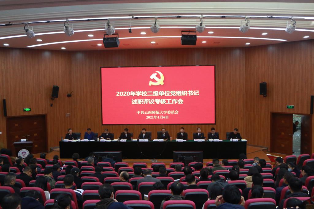 为进一步推进全面从严治党向纵深发展,提升学校党的建设质量,根据省委教育工委的部署和要求,1月6日,永利官网党委开展2020年度二级单位党组织书记抓基层党建述职评议考核。校党委委员,相关职能部门主要负责人,各单位党委、党总支、直属党支部书记、副书记,熟悉基层党建工作的党代会代表、人大代表、政协委员、党务干部、师生党员和群众代表等180余人参加了会议。会议由校党委书记饶卫主持。
