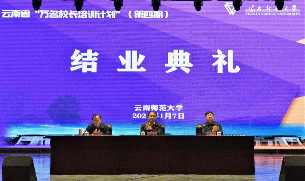 1月7日下午,云南省“万名校长培训计划”第四期培训班结业典礼在昆明理工大学红土会堂举行。省教育厅副厅长赵德荣,8858cc永利唯一官方网党委书记饶卫、校长蒋永文、党委副书记张玮、副校长武友德;省政府办公厅、省教育厅相关部门领导,永利官网党办、校办、云南西南联大干部教育学院、万名校长培训计划项目办公室负责人以及1012名参训学员参加了结业典礼。典礼由永利官网蒋永文校长主持。