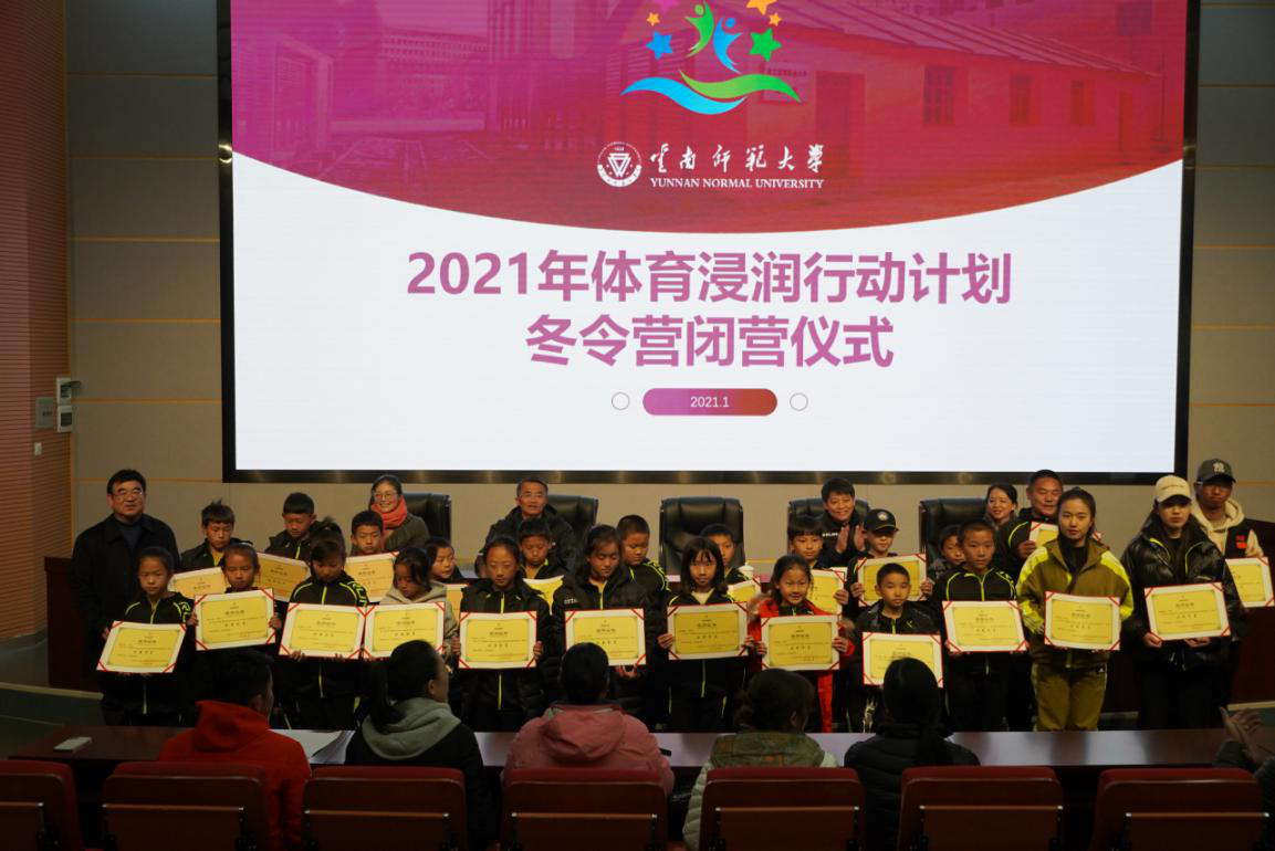 1月19日下午,教育部2021年体育浸润行动计划冬令营毕营仪式在永利官网西边中心报告厅顺利举行。永利官网副校长武友德,体育学院院长聂真新,副院长丁先琼、袁际学、袁凤梅以及体育学院任课教师、泸水市第一完全小学和独龙江乡九年一贯制学校的24名师生出席了毕营仪式。